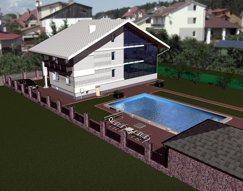 На участке расположено:Бассейн 16м на 8 м (глубина 2м и зона купания для детей 1м)