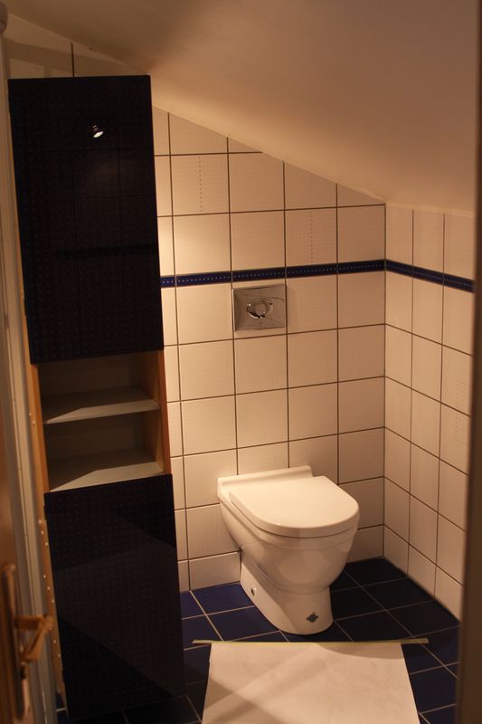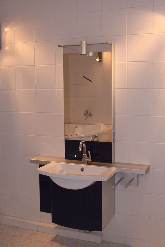 Унитаз фирмы ДУРАВИТ. Умывальник и мебель фирмы АЛАПЕ, смеситель ДОН БРАХТ.