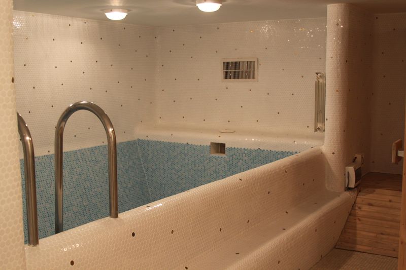 Сауна (фирмы ХАРВИЯ)Бассейн 4м на 2,5м глубина 1,5м (выложенный немецкой круглой мазайкой с добавлением золотых и серебряных элементов декора)